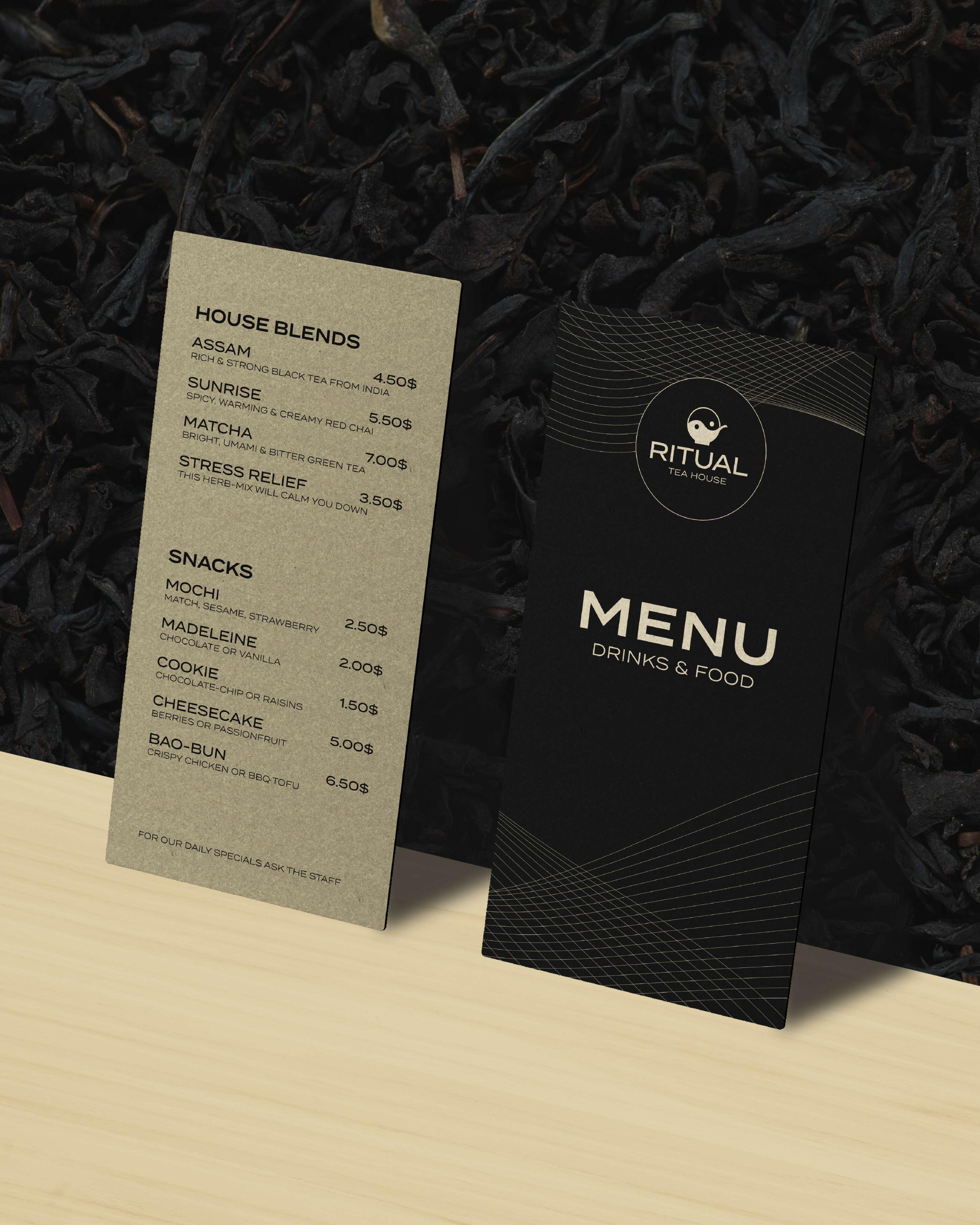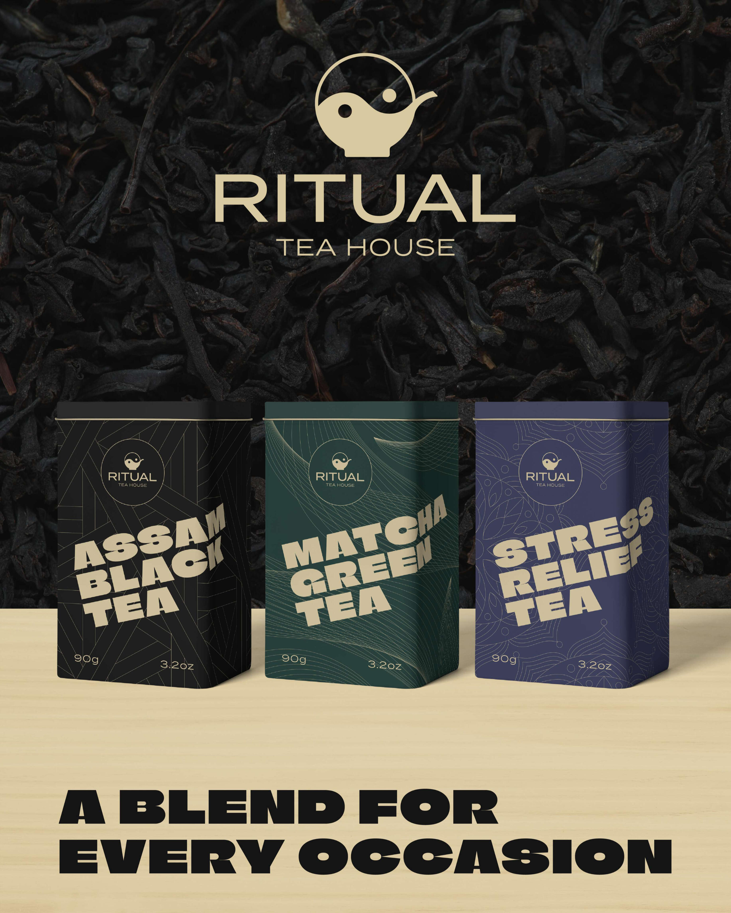 Die Marke verbindet die Gelassenheit eines Teehäuschens mit der Lebendigkeit eines sozialen Studios. Das Design balanciert Schlichtheit und Ausdruckskraft durch klare Linien, subtile Farben und markante grafische Elemente. „Ritual“ steht nicht nur für Tee – sondern für einen Raum und eine Stimmung, in die man eintauchen möchte.